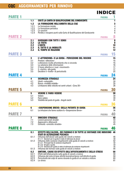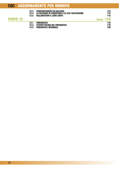 In virtù del fatto che a fine corso non c’è un esame e che il candidato non vuole essere appesantito da un testo voluminoso e complicato, abbiamo concepito il nostro CQC RINNOVO come segue: